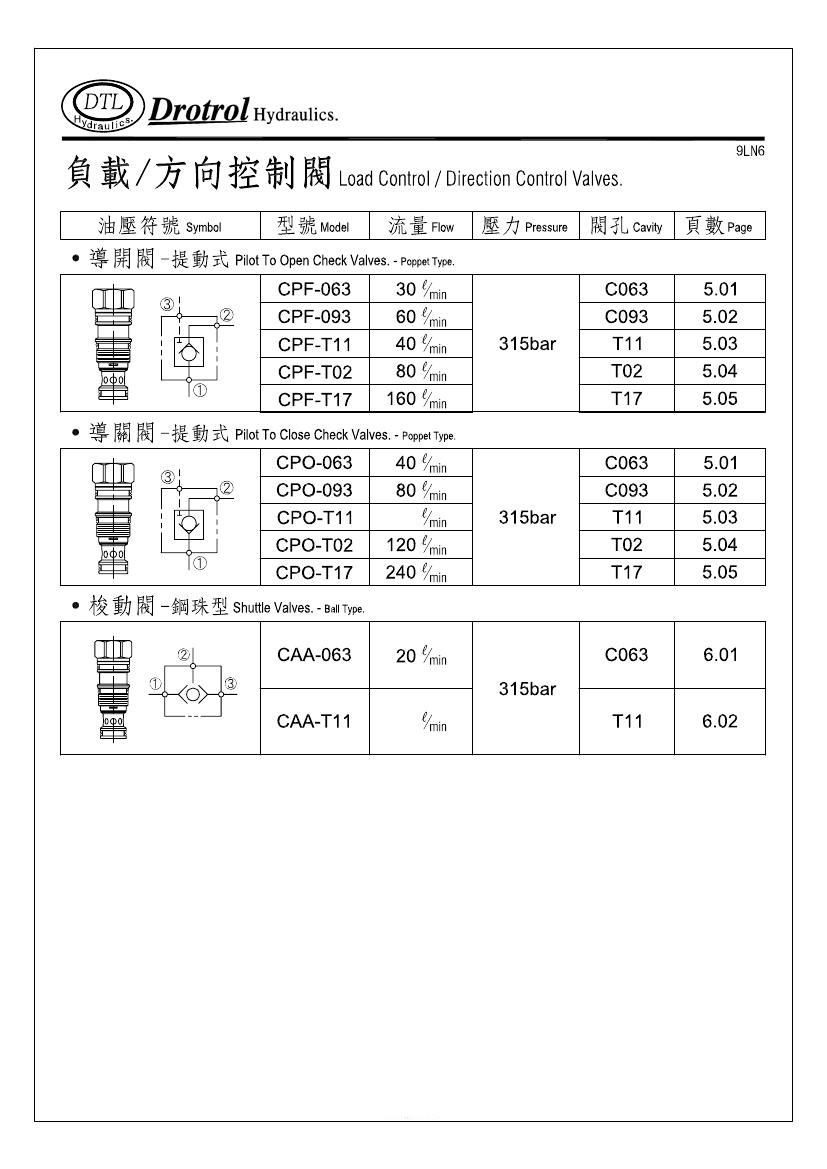 Pilot valve Pilot shut valve Shuttle valve CPF CPO CAA